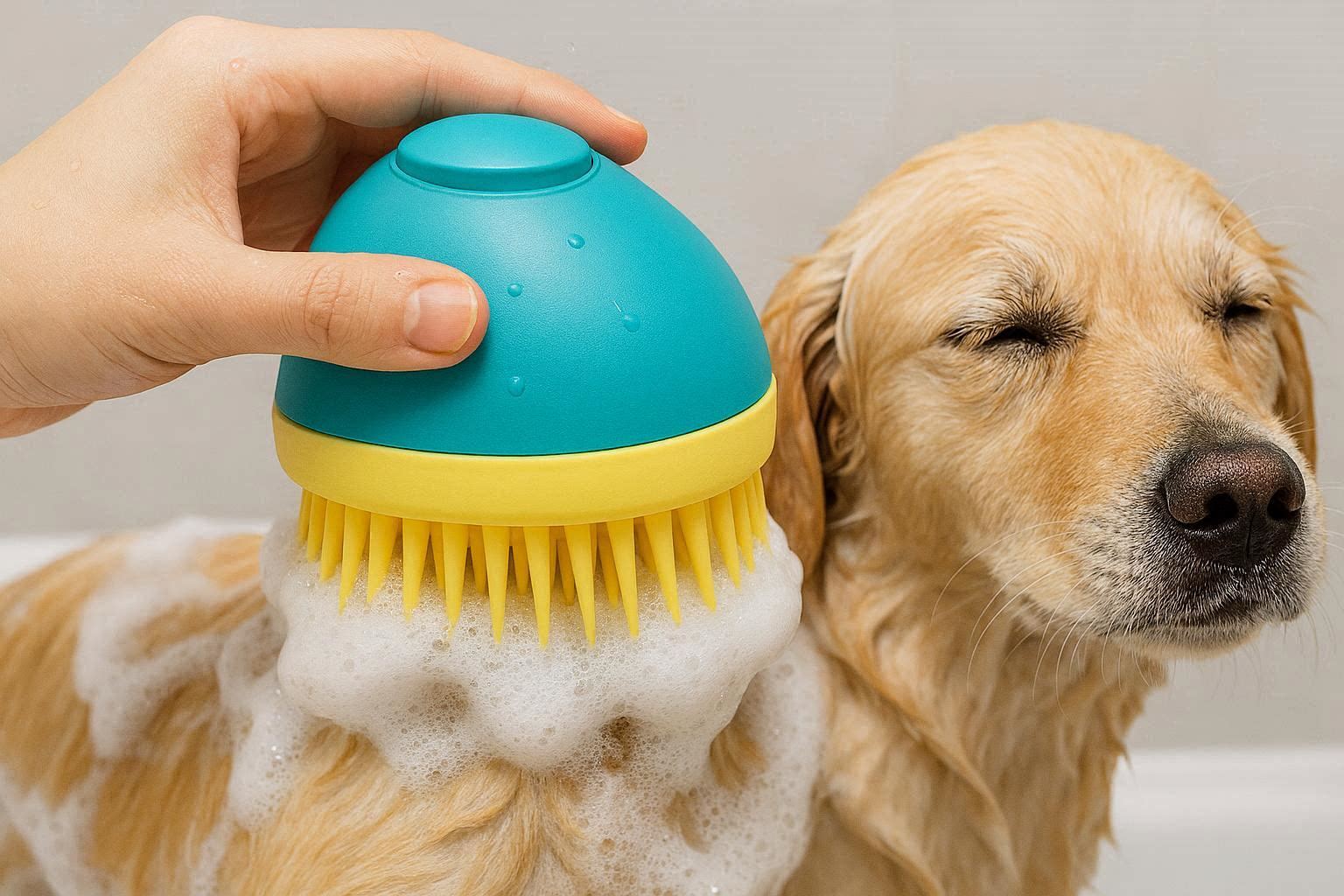 Pet Bathing Scrubber Brush With Integrated Soap Dispenser For Deep Cleaning And Skin Massage